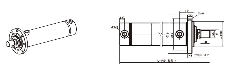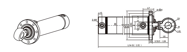 活塞桿端為內螺紋桿頭耳環(huán)連接