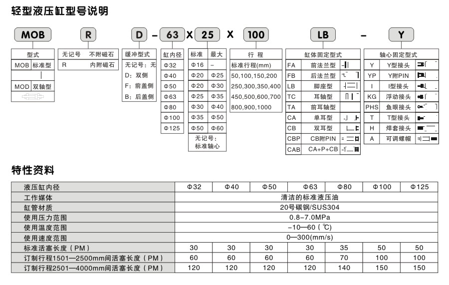 4)按照以上三條,可按照以下MOB油缸型號(hào)說(shuō)明,明確您需要的型號(hào);