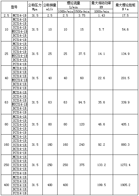 CB-B齒輪泵技術(shù)參數(shù)