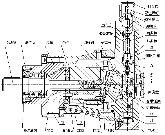 定量機(jī)構(gòu)中斜盤始終固定在定量端蓋上,不能改變柱塞的行程,所以其流量是固定的。