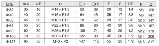 d.安裝尺寸(包括活塞桿端尺寸、油口尺寸、安裝部位尺寸)