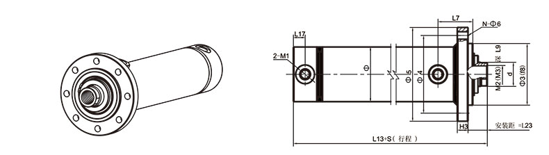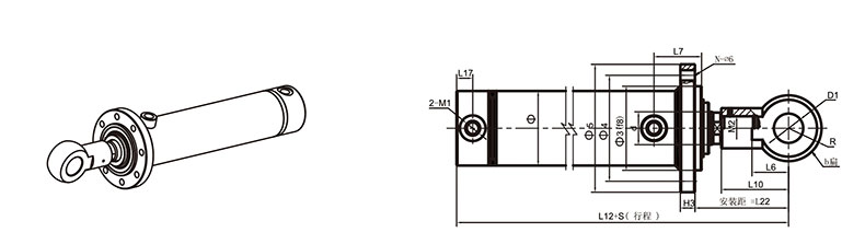 活塞桿端為內螺紋桿頭耳環(huán)連接