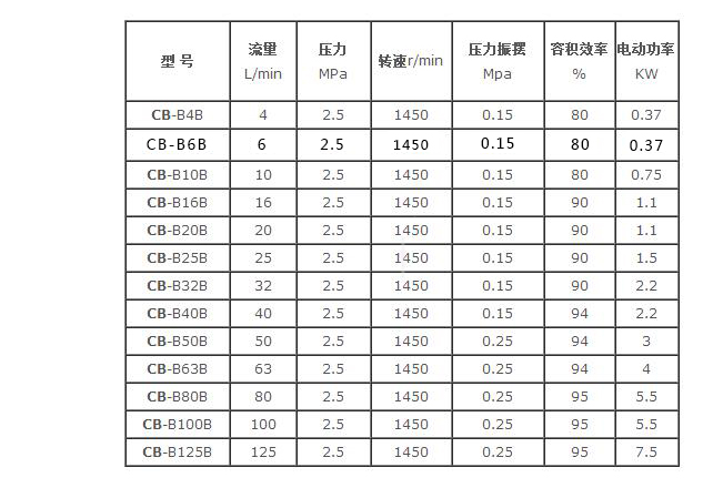 CB-B齒輪泵技術(shù)參數(shù)