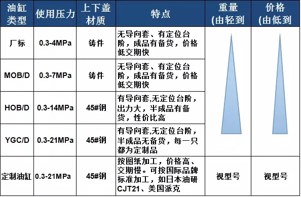 MOB油缸沒有導向套,YGC/YGD與HOB有導向套。