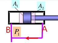 如下圖兩端進出口油口A和B都可通壓力油或回油,以實現(xiàn)雙向運動,故稱為雙作用缸。